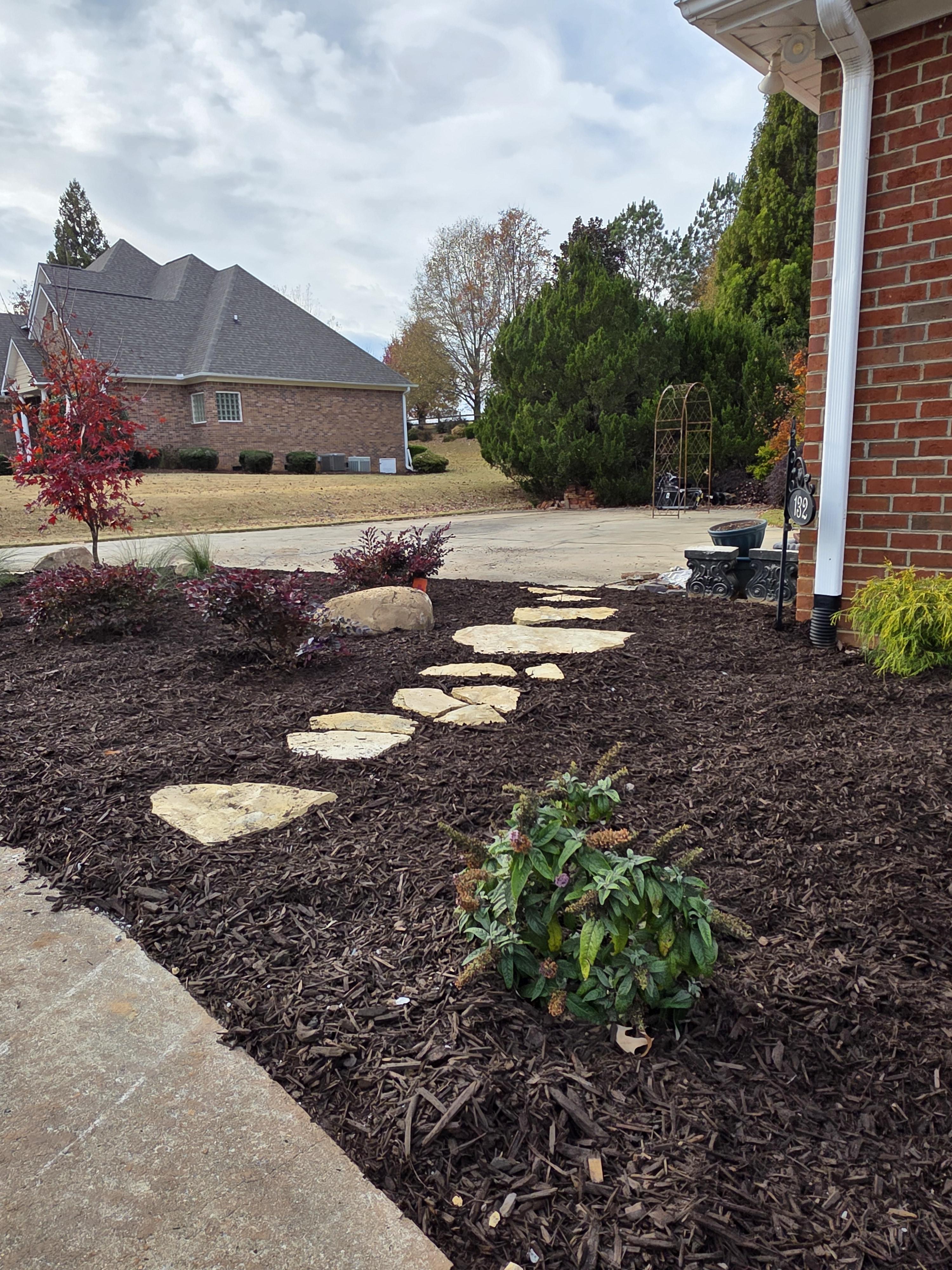 We offer a variety of landscaping services, including lawn care, mulching, paver patios, landscape design, hardscaping, landscape lighting, and material removal/disposal.